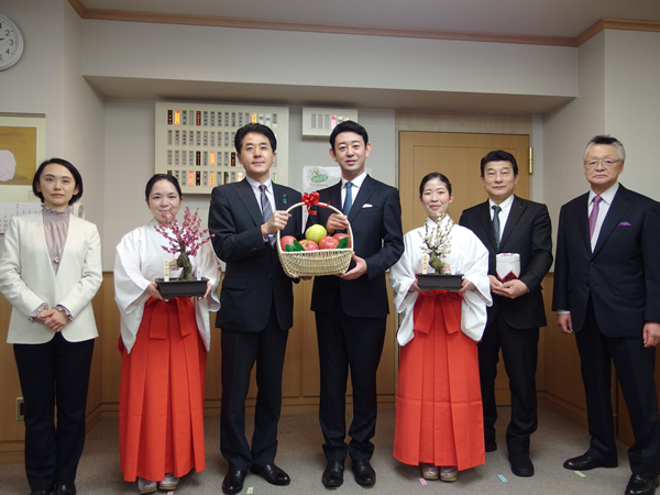太宰府天満宮の梅の大使が紅白の梅を届けに来てくれました。